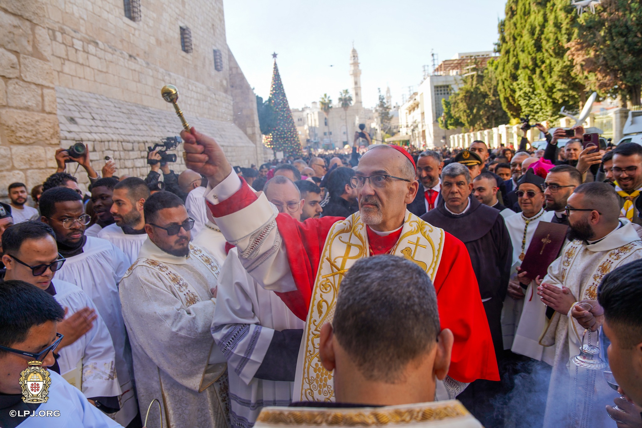 The narrow streets of Bethlehem’s Old City once again resounded with Christmas hymns as more than twenty scout groups marched before His Beatitude Cardinal Pierbattista Pizzaballa, Latin Patriarch of Jerusalem, and the accompanying delegation of religious and civil authorities, as the Patriarch made his Solemn Entry into Bethlehem on December 24, 2025, announcing the beginning of the Christmas celebrations.