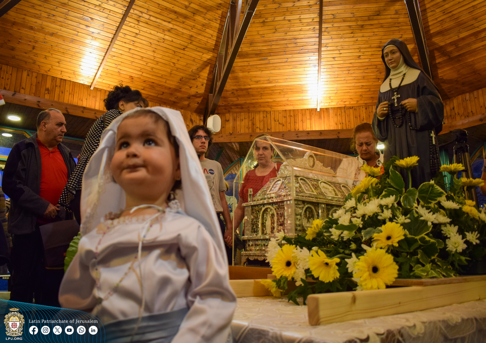 Mgr Shomali a présidé la célébration eucharistique. Dans une homélie émouvante centrée sur le chemin de la sainteté, il a souligné que le chemin de la sainteté commence par l'écoute de la Parole de Dieu et sa mise en pratique quotidienne. Il a souligné les vertus des deux saintes, notamment leur humilité, malgré leur rôle important dans la vie de l'Église.