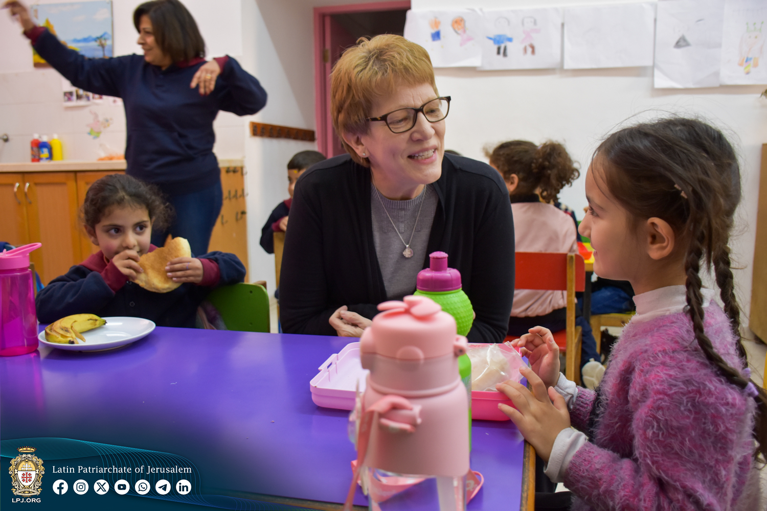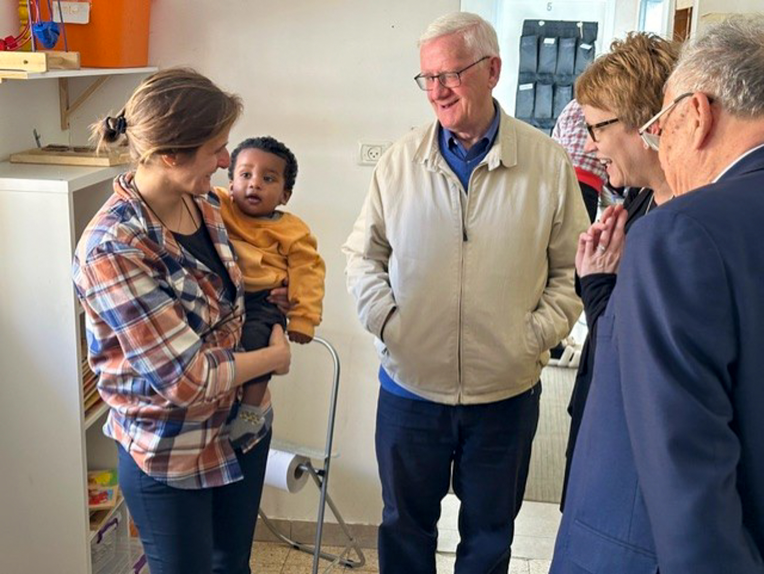 بعد ذلك، توجهوا الى مركز القديسة راحيل للأطفال المهاجرين الذي أنشأته نيابة القديس يعقوب اللاتينية في القدس. يوفر المركز رعاية نهارية آمنة لأطفال الآباء المهاجرين الذين يعملون لساعات طويلة حتى يتمكنوا من نيل لقمة العيش. تم تجديد المبنى بالكامل بفضل مساعدة العديد من المحسنين، وفي مقدمتهم فرسان القبر المقدس. خلال زيارتهم للمركز، رحب بهم الأب ماثيو كوتينيو، النائب البطريركي لشؤون المهاجرين وطالبي اللجوء، وأشركهم مدى صعوبة حياة المهاجرين والعقبات التي يواجهونها كل يوم. وعبر السيد تيم: "كان من الصعب لنا الاستماع الى الصعوبات التي يواجهها المهاجرين في ممارسة إيمانهم. كما وأتيح لنا في وقت لاحق أن نحضر اجتماعًا مع كل من الكهنة والراهبات اللذين يخدمون هذا المجتمع، لقد أنذهلنا لرؤية عدد المجتمعات المختلفة الموجودة هناك – الصينية، والفلبينية، والأفريقية، والهندية، والرومانية، والسريلانكية، والأوكرانية. هذا المعنى الحقيقي للكنيسة الكاثوليكية“.