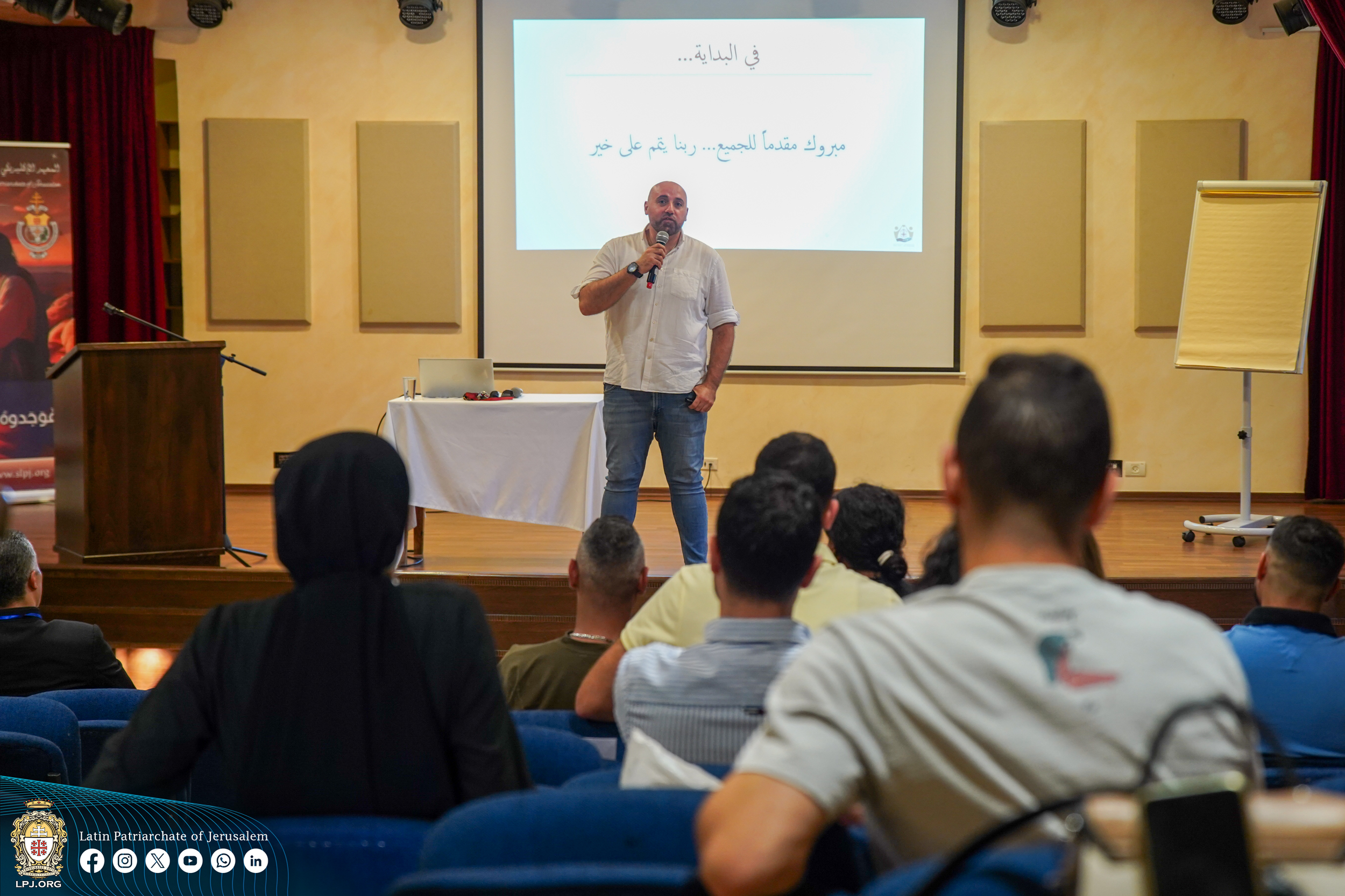 The program began with an introductory session that helped participants become familiar with one another. Then, Fr. Iyad Twal, Executive Vice President of Bethlehem University, addressed the humanitarian aspects of engagement, emphasizing mutual support within couples and their communities. This was followed by a lecture from Mr. Osama Khalileh, a professor of business administration at Bethlehem University, who discussed the financial challenges newlyweds often face and offered practical tools for effective home management.