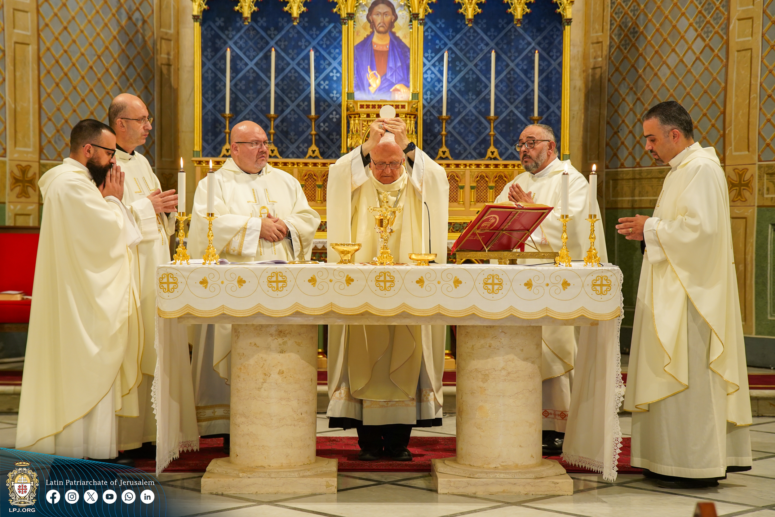 After a lunch break, Msgr. William Shomali, General Vicar, led a Mass at Our Lady of the Annunciation Church in Beit Jala, with the participation of several priests and seminary students.