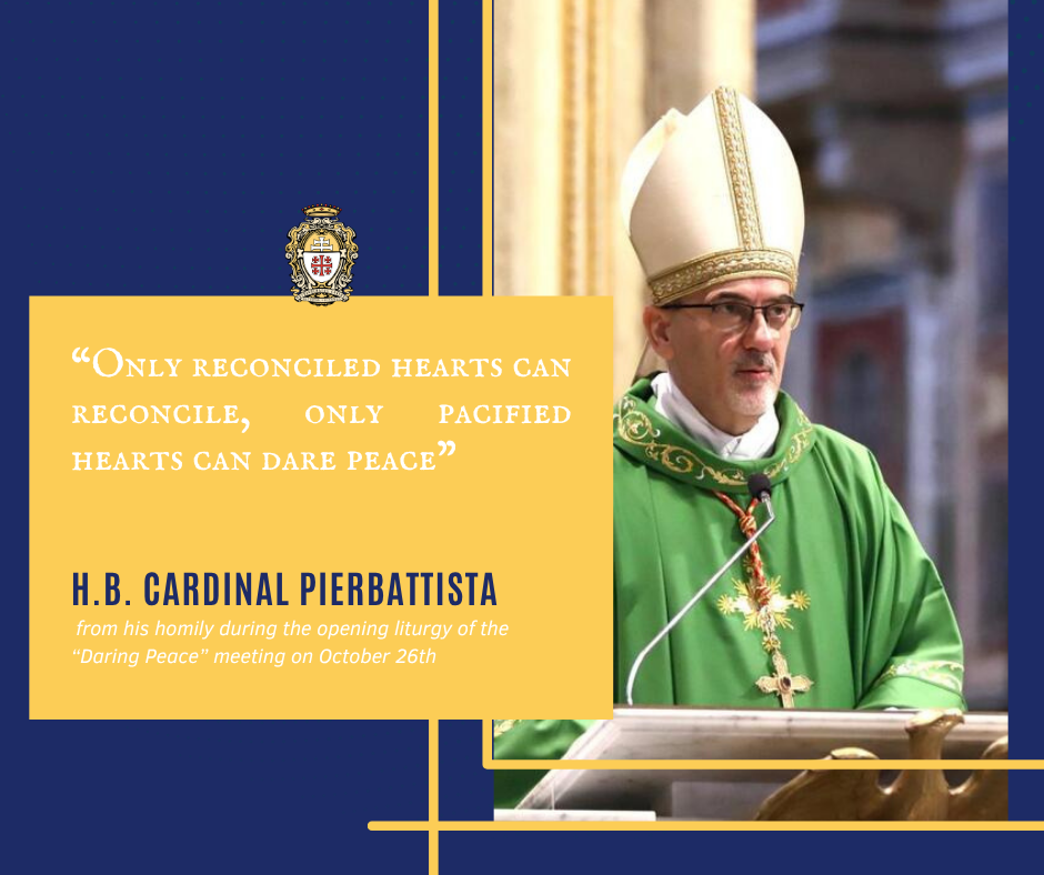 “Only those who recognize their fragility and need for mercy can become instruments of reconciliation…. Only justified hearts can justify. Only pacified hearts can dare to make peace,” said His Beatitude Cardinal Pierbattista Pizzaballa, Latin Patriarch of Jerusalem, in his homily at St. John Lateran in Rome, on October 26th, 2025, as he presided over the Eucharistic Liturgy, which opened the International Meeting organized by Sant'Egidio entitled “Dare Peace”.