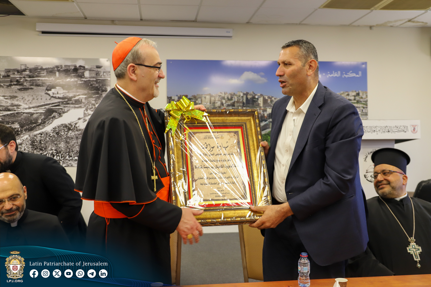 El segundo día, S.B. el Cardenal Pizzaballa y la delegación que lo acompañaba, se reunieron primero con el consejo local de Jaffa-Nazaret para tener más conocimiento sobre los diferentes aspectos de la ciudad, el entorno social y las luchas actuales. El Cardenal Pizzaballa expresó el motivo por el que se propone no solo visitar a su rebaño durante sus visitas pastorales, sino también a las diferentes comunidades de la ciudad, "porque la comunidad cristiana es parte de una sociedad más grande, y es importante trabajar juntos, mantener buenas relaciones, superar las dificultades de la vida en común". El Sr. Khalileh, presidente del consejo local, le entrego al Cardenal un regalo de agradecimiento por sus grandes esfuerzos en el fomento de la convivencia en la comunidad.