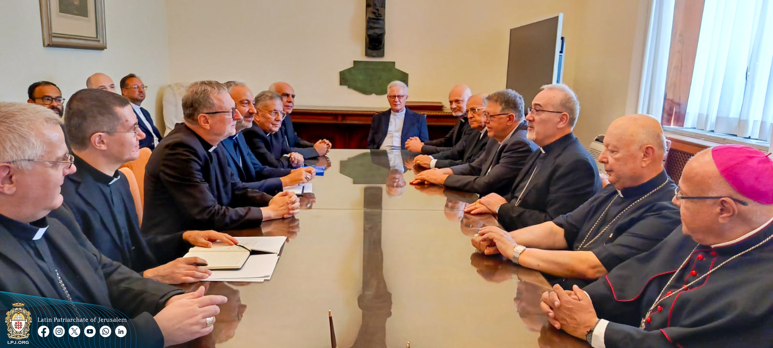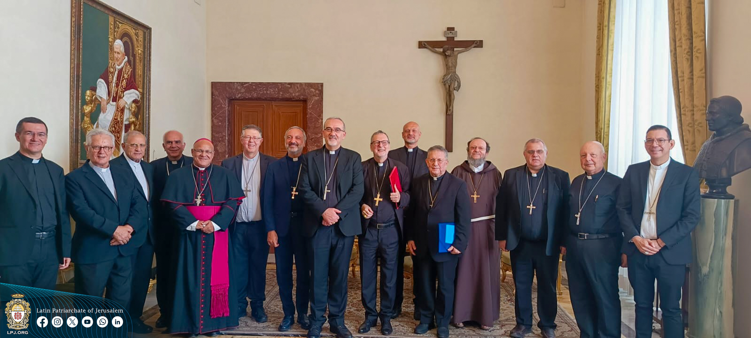 En la mañana del lunes 26 de agosto, los miembros de la Conferencia, presidida por Su Beatitud el Cardenal Pierbattista Pizzaballa, Patriarca Latino de Jerusalén, se reunieron con S.E. el Cardenal Claudio Gugerotti, Prefecto del Dicasterio para las Iglesias Orientales, acompañado por S.E. el Arzobispo Michel Jalakh, Secretario del Dicasterio para las Iglesias Orientales.