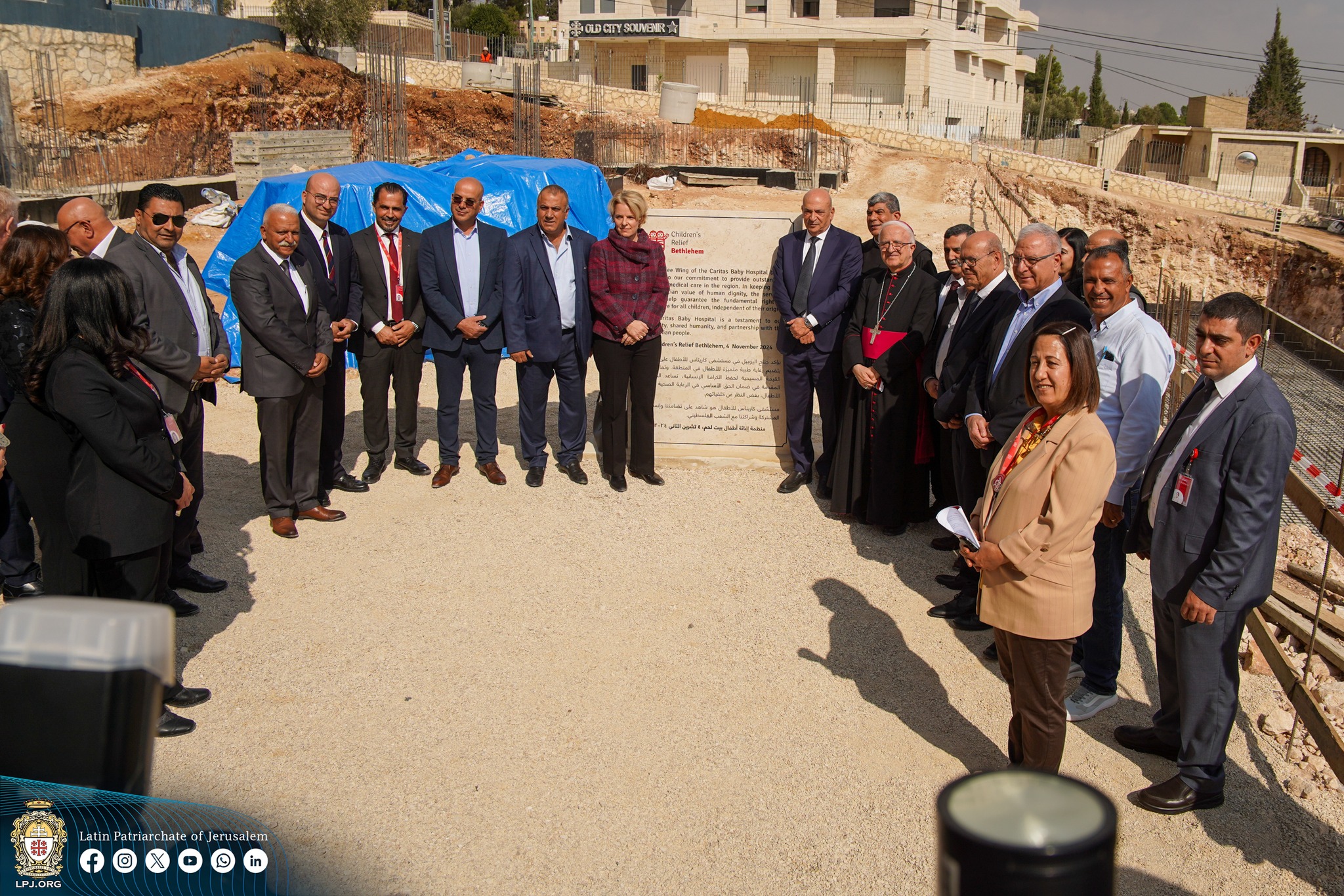 El lunes 4 de noviembre de 2024, Mons. William Shomali, Vicario General Patriarcal, y el P. Ibrahim Faltas, Vicario de la Custodia de Tierra Santa, oficiaron una Misa en el Hospital Infantil Baby Caritas de Belén con motivo de la ceremonia de colocación de la primera piedra del nuevo edificio de Cirugía Pediátrica de Día del Jubileo.