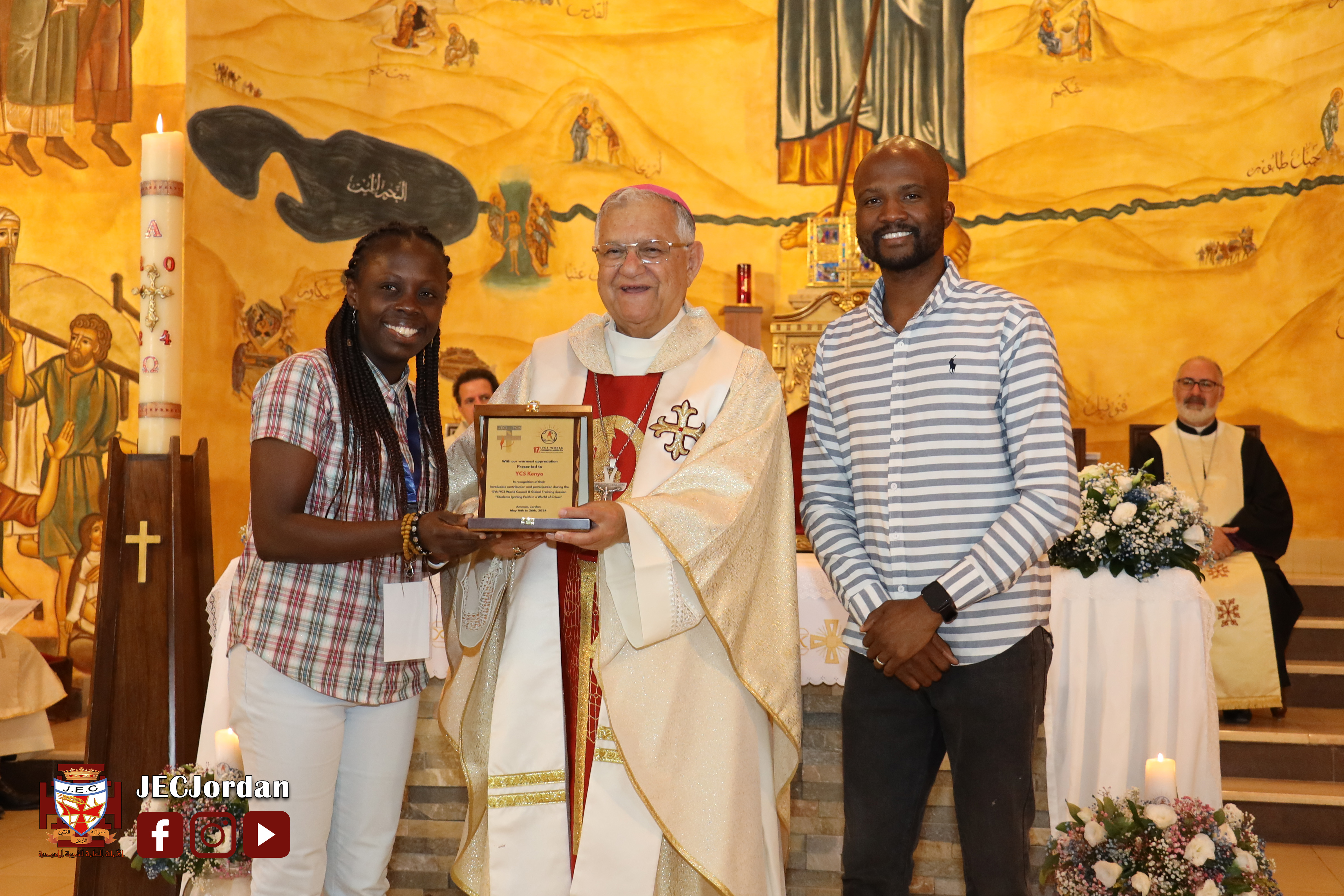 À la fin de la messe, M. Innocent Odongo, secrétaire général mondial, accompagné de M. Roy Ibrahim, coordinateur des programmes des administrateurs mondiaux, a remercié tous ceux qui ont contribué au succès de la conférence, les administrateurs mondiaux et l'équipe locale en Jordanie, représentée par le père Wajdi Twal, l'aumônier des jeunes, Ibrahim Muslim, secrétaire général, et Sarah Al Jamal, coordinatrice pour le Moyen-Orient.