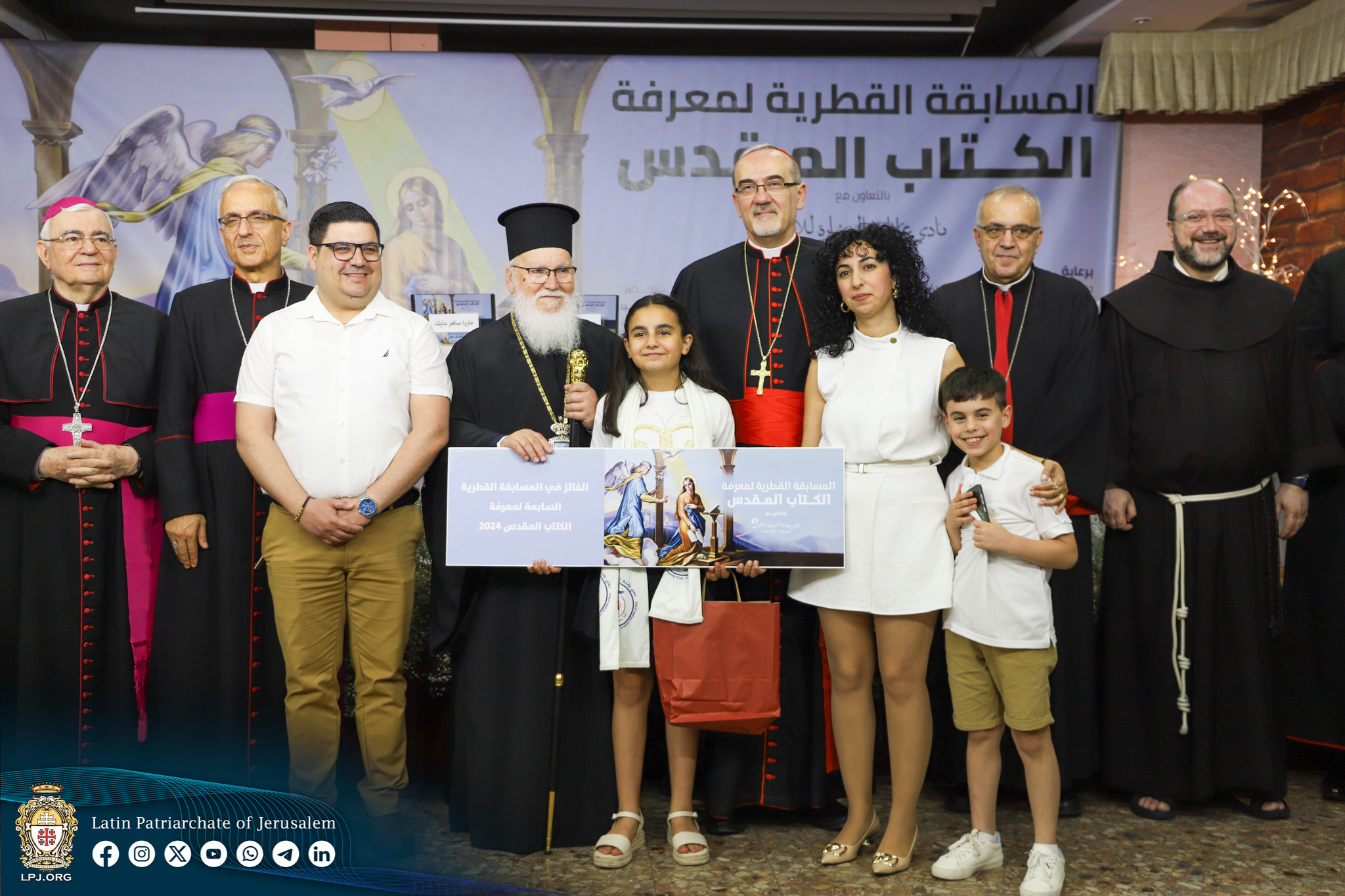 Cette année, 257 candidats de diverses paroisses de Terre Sainte participaient au concours, malgré l'absence de 65 concurrents de Cisjordanie et de Gaza en raison de la situation actuelle du pays. 23 participants de différentes tranches d'âge accédaient à la phase finale, et les lauréats suivants ont remporté le concours : Katrina Nehme Issa, Yasif and Maria Saher Hayek, Majd Azmi Maalouf, Imad Azmi Maalouf, Aida Nicola Creni, Melanie William Deeb, Grace Salim Baba.