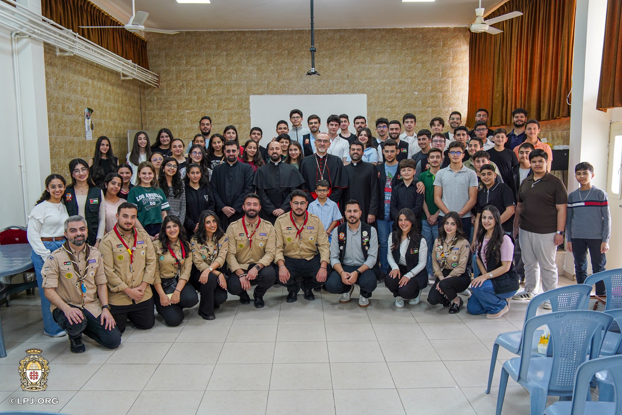 À son arrivée, le Patriarche a été chaleureusement accueilli par toute la communauté paroissiale : le curé, le père Wajdi Sahawneh ; le vicaire paroissial, le père Paolo Flichiti ; des religieuses ; et Mgr Iyad Twal, vicaire patriarcal en Jordanie. Des scouts, des groupes de jeunes, des membres du conseil paroissial et des représentants des autorités civiles s’étaient également rassemblés, témoignant de l’unité et de la vitalité de l’Église locale.