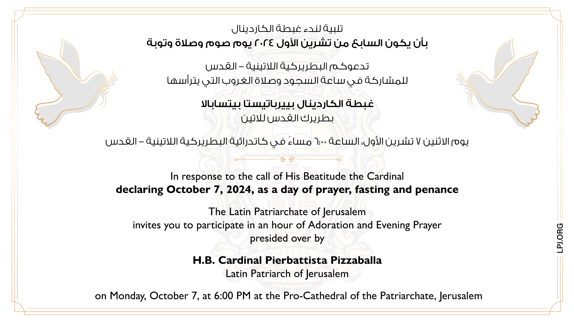 Appelant à faire du 7 octobre 2024 une journée de jeûne, de pénitence et de prière,