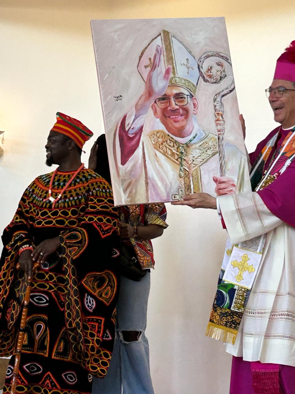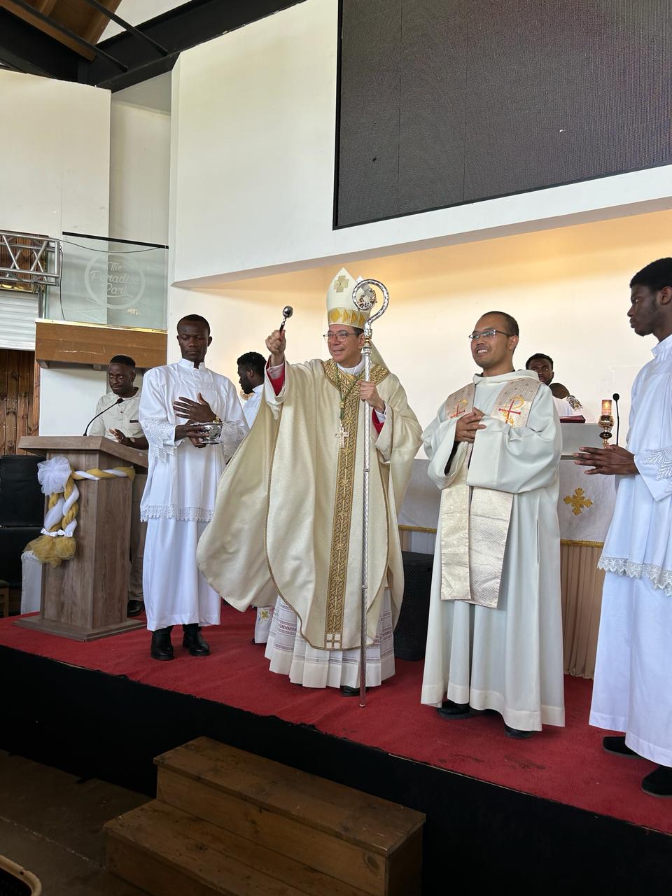 Dans son homélie, Mgr Varriano a exprimé sa grande joie d'être avec les communautés de Chypre situées au nord : "Aujourd'hui, je suis ici pour vous dire que je me soucie de vous, que je vous aime tous.... Et souhaite que nous marchions ensemble... C'est pour vous que je suis évêque". Il a ensuite expliqué ses nouvelles responsabilités en tant qu'évêque de la communauté catholique latine de Chypre : "En tant qu'évêque, je suis responsable de votre salut... oui, du salut de mon troupeau. Et les symboles que porte l'évêque parlent précisément de cela. La Croix... parce que je dois aimer l'Église, mon troupeau, et donner ma vie pour vous, mon peuple, jusqu'à la mort. La crosse (le bâton du berger) est munie d'un crochet recourbé, parce que le berger doit prendre la brebis par le cou pour la sauver lorsqu'elle est en danger, afin de ne perdre aucune brebis. Ensuite, la couleur nous rappelle le sang... aimer jusqu'à donner son propre sang". Il a terminé en demandant à la communauté de le porter continuellement dans ses prières, alors qu'il s'efforce sincèrement de rester fidèle à ces actes, par la grâce et la puissance de l'Esprit Saint.