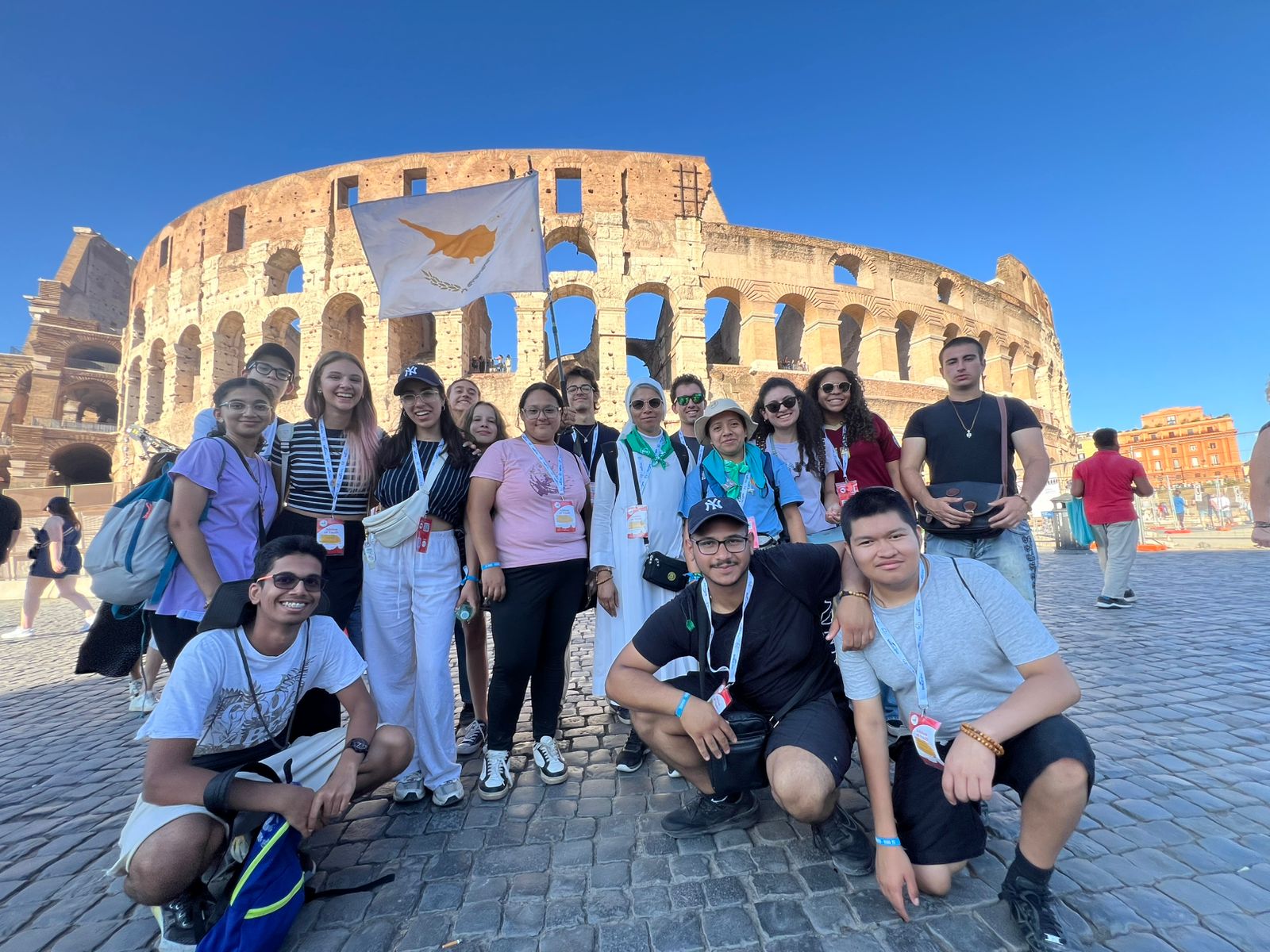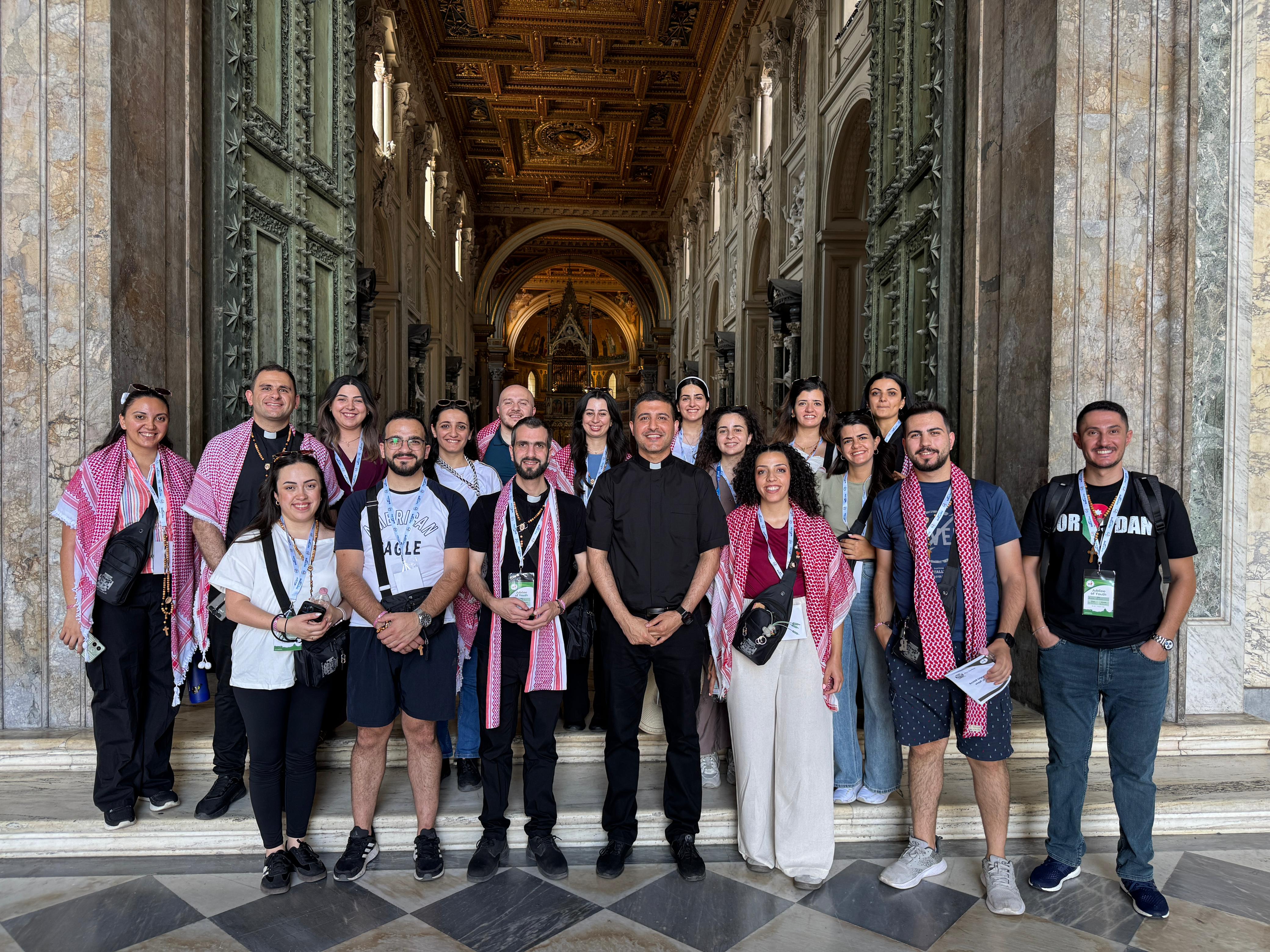 Ce groupe composite de jeunes pèlerins – 18 de Chypre, 17 de Jordanie, 24 de Jérusalem et 2 de Bethléem – s'est rendu à Rome en emportant avec lui les prières de son peuple et les blessures de sa patrie. Le cœur ouvert à la rencontre avec le Christ, ils ont franchi la Porte Sainte de la basilique Saint-Pierre non seulement en tant que pèlerins, mais aussi en tant que témoins d'une espérance qui ose briller au milieu des ténèbres. Chaque groupe était accompagné de chapelains dévoués, qui les guidaient sur ce chemin de foi et de témoignage.