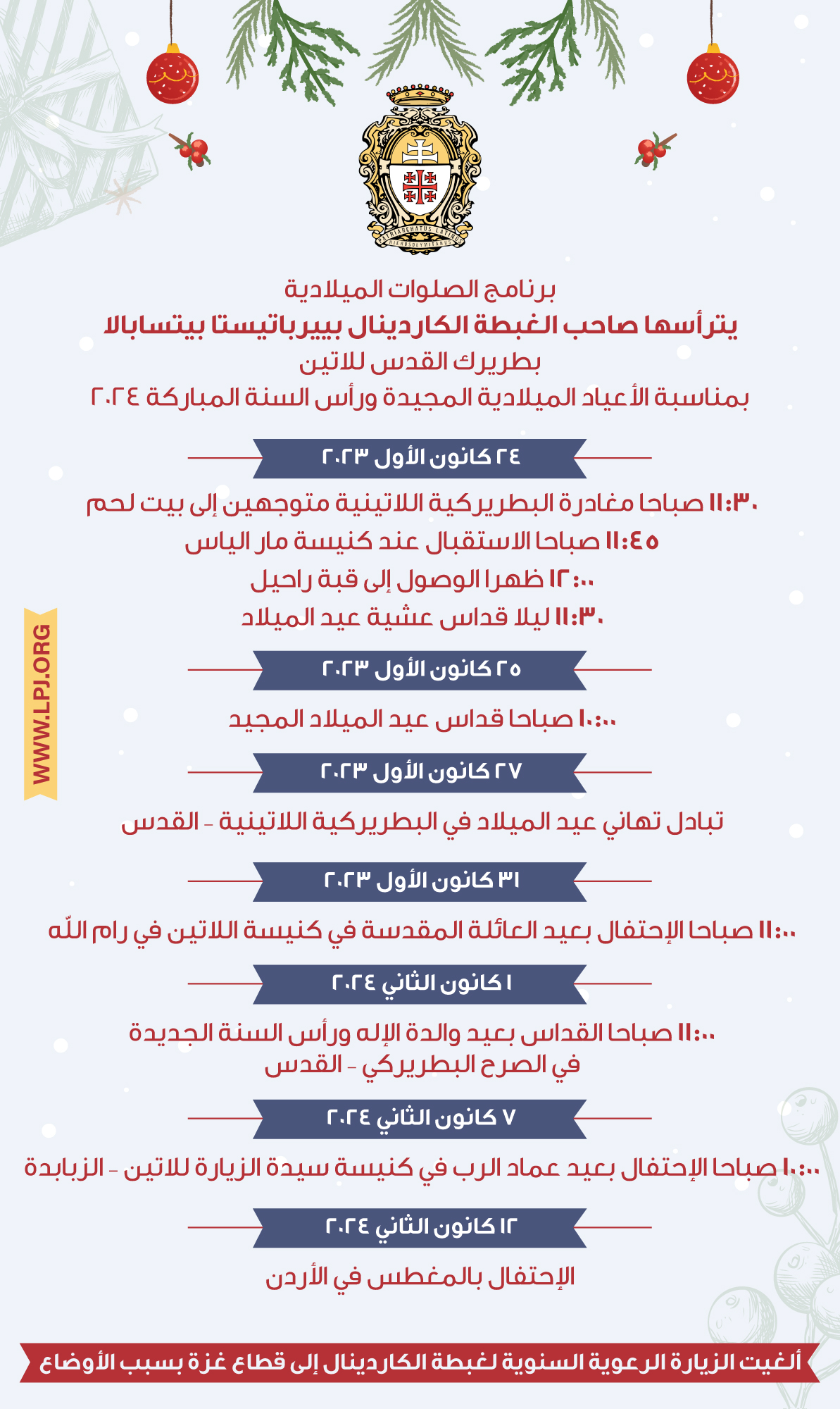 بمناسبة الأعياد الميلادية المجيدة ورأس السنة المباركة 2024