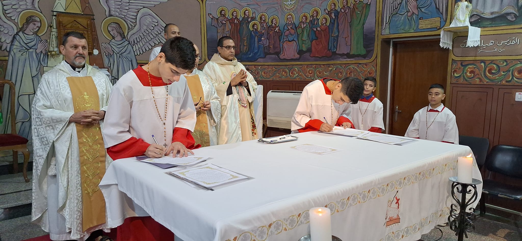 الأحد 27 تشرين الأول 2024 / غزة – احتفل الأب جبرائيل كاهن رعية غزة والأب يوسف الكاهن المساعد والأب كارلوس فريرو الرئيس الإقليمي لرهبنة الكلمة المتجسد، بالقداس الإلهي وابراز الوعد لـ 16 شابًا وصبية من الشبيبة بعيد السيدة العذراء سيدة فلسطين وسائر الأرض المقدسة، حيث كان هدف الاحتفال هو تكريس حياتهم للمسيح من خلال العذراء مريم.