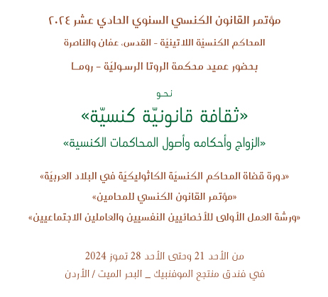 برنامج مؤتمر القانون الكنسي السنوي الحادي عشر ٢٠٢٤