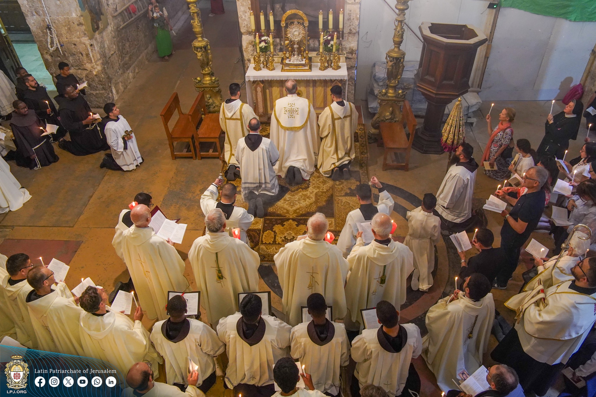 Al termine della processione, il Cardinale ha elevato il Santissimo Sacramento in segno di benedizione, impartendo la benedizione apostolica a tutti i presenti. La liturgia si è conclusa in un'atmosfera di profonda preghiera e devozione, sollevando i cuori in supplica per la pace a Gerusalemme e in tutta la Terra Santa.