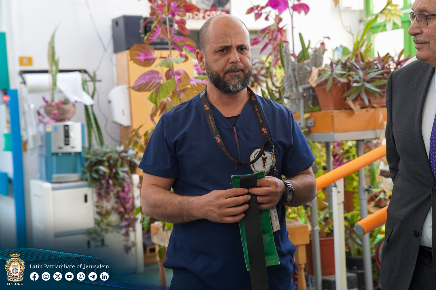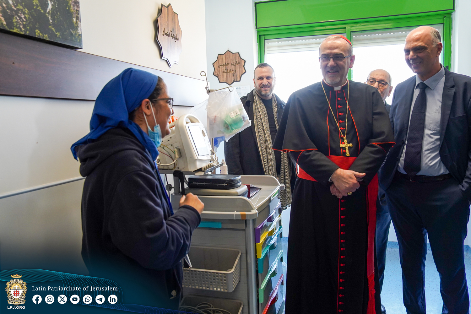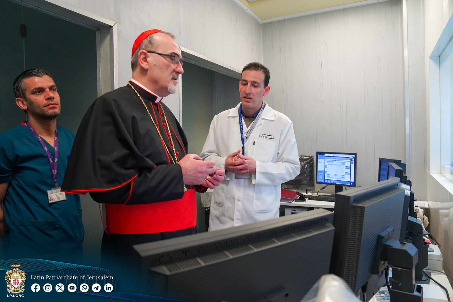 All'ingresso dell'ospedale è stato accolto da Elie Shehadeh, Direttore Generale, dal Dr. Bishara Abu Ghanam, Presidente del Consiglio di Amministrazione, e da George Kawas, Tesoriere, prima di visitare i diversi reparti dell'ospedale. Durante la visita, Sua Beatitudine il Card. Pizzaballa ha appreso i diversi tipi di pazienti assistiti e i vari servizi medici forniti al governatorato di Betlemme in particolare e alla patria in generale.